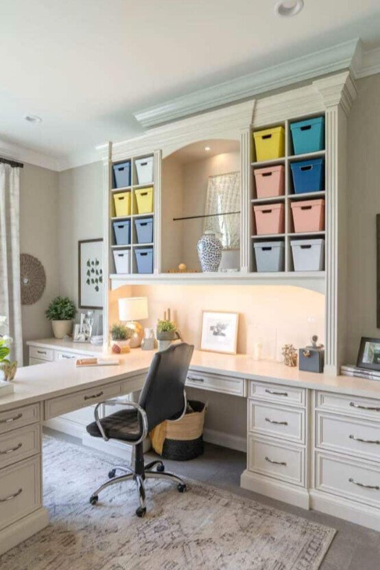 Color coded offices are one of the more underrated craft room office ideas.