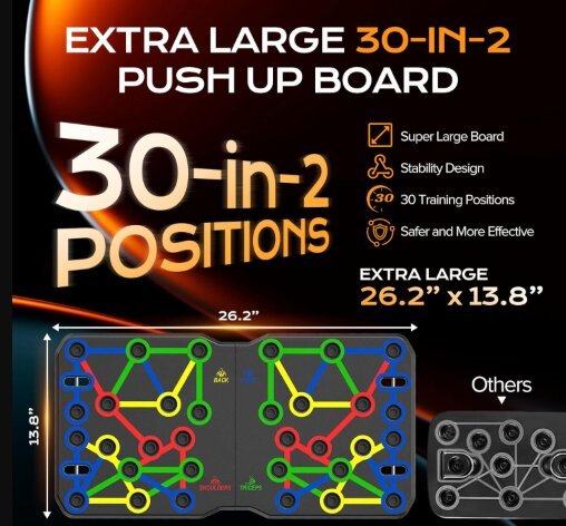 It combines multiple hand positions into one board, letting you rotate between triceps, chest, shoulders, and back-focused push-ups without overthinking it.