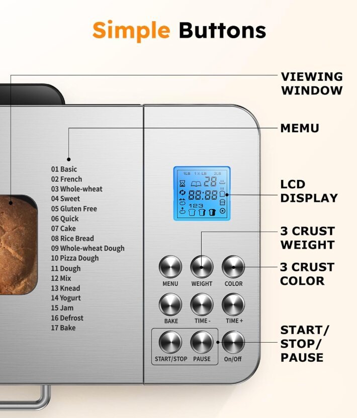 - Large 2 lb capacity (also supports 1 lb and 1.5 lb loaves)