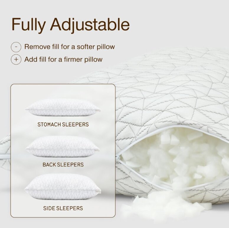 If you’ve tried traditional down, feather, or solid memory foam pillows and still wake up with neck pain or stiffness, this hybrid adjustable design solves the core issue, improper loft and poor support balance.