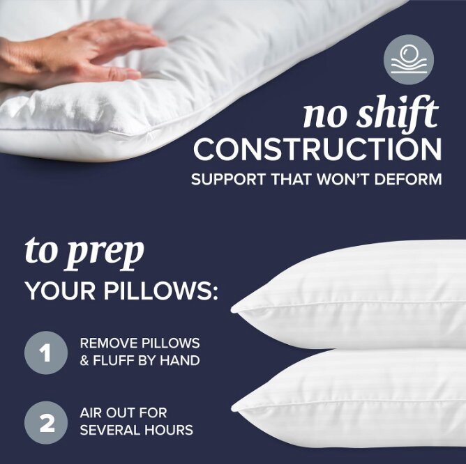 - Shredded memory foam + down-like poly blend for balanced support and movement