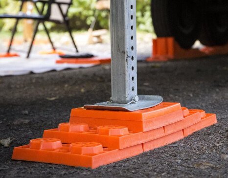 Most stackable blocks are better for stabilizers and jacks—not for precise trailer leveling under full load.